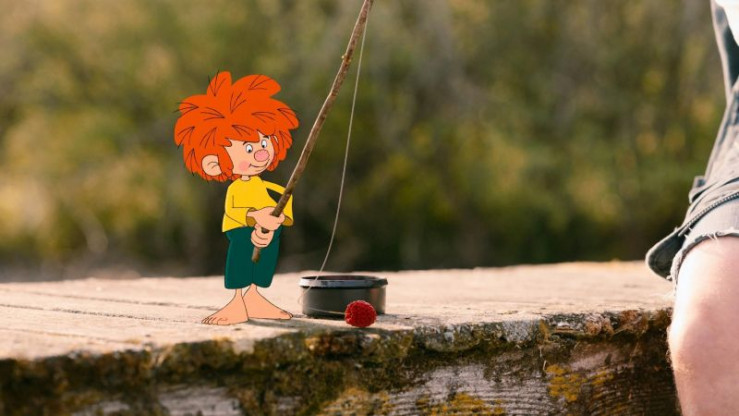 Aber Pumuckl hat den Fisch gefangen! Er ist mächtig stolz darauf. Doch was der Eder als nächstes mit dem Fisch vorhat, behagt dem Kobold so gar nicht. Er hat Mitleid mit dem Tier. Wie zufällig stößt er den Eimer um, sodass der Fisch entkommen kann. Und so kehren sie am Abend zwar ohne Fisch nach Hause zurück. Aber dafür mit den Taschen voll frischer Himbeeren, die sie sich schmecken lassen.