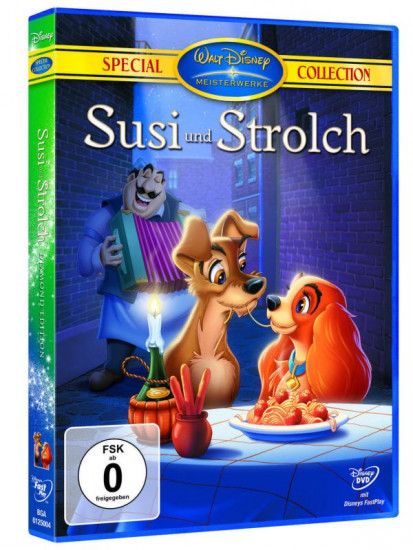 Die charmante Cockerdame Susi lebt in einem liebevoll behüteten Zuhause. Als allerdings eines Tages Tante Sarah mit den heimtückischen Katzen Si und Am zum Babysitten kommt, sind für Susi die harmonischen Zeiten vorbei. Sie reißt aus und trifft den frechen Vagabunden Strolch. Bei einem unvergesslichen romantischen Spaghettiessen kommen sich die beiden näher und gemeinsam mit Strolch lernt Susi das abenteuerliche und ungebundene Leben auf der Straße kennen. Doch auf Susi warten ein Zuhause und eine Familie, die sie beschützen muss.