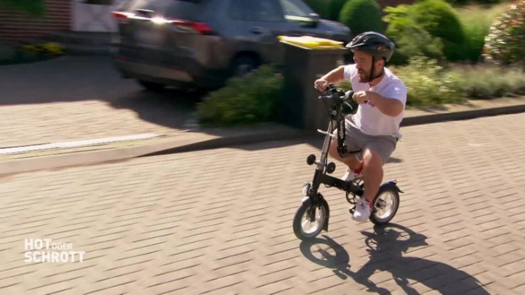 Das "Kwiggle Bike" soll trotz seiner geringen Größe bis zu 25 km/h schnell fahren können. Mathias Mester testes das Klappfahrrad.
