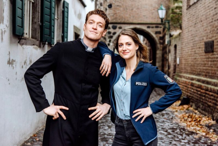 Die Polizisten kosten den Puderzucker. Maik (Daniel Donskoy, r.) zeigt Dorfpolizist Kai (Sebastian Weiss, l.) die Dose. +++ Die Verwendung des sendungsbezogenen Materials ist nur mit dem Hinweis und Verlinkung auf RTL+ gestattet. +++