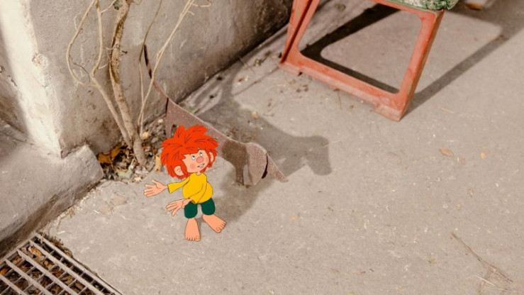 Florian Eder (Florian Brückner) und Pumuckl +++ Die Verwendung des sendungsbezogenen Materials ist nur mit dem Hinweis und Verlinkung auf RTL+ gestattet. +++