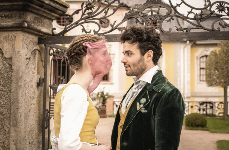 Prinz Philip empfängt nichtsahnend seine falsche Braut. Irm (Julia Windischbauer), als Christine verkleidet, verbirgt ihr Gesicht hinter einem Schleier um den Schwindel nicht sofort auffliegen zu lassen.