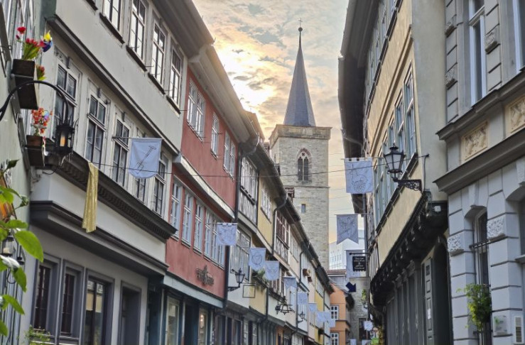 Die Krämerbrücke in der Erfurter Altstadt am frühen Morgen