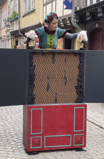 Die Schauspielerin Annette Seibt erzählt die Brückengeschichte mit Puppen