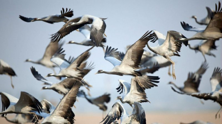 Jungfernkraniche machen sich im Herbst auf den Weg in den Süden - von den Steppengebieten Asiens nach Indien.