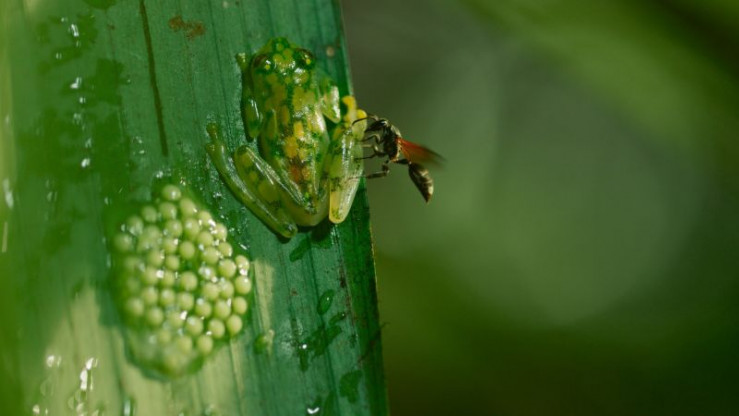 Kein Lebensraum an Land beherbergt größeren Artenreichtum als tropische Regenwälder. Dort liefern sich die Bewohner intensivste Konkurrenzkämpfe. Die großen Wälder sind Orte voller dramatischer Geschichten und überraschender Ereignisse. Jaguare fangen Kaimane, Delfine schwimmen durch Baumkronen, und Frösche verteidigen in Ninja-Manier ihren Nachwuchs. Die Reise geht von den Dschungelgebieten Südamerikas und Südostasiens bis zu den Regenwäldern Australiens. Einige von ihnen gehören zu den komplexesten Lebensräumen auf unserem Planeten. Von den rund 8,7 Millionen Tier- und Pflanzenarten leben über die Hälfte in tropischen Regenwäldern. Aber diese Habitate sind keine Paradiese, auch wenn das Leben in unglaublicher Fülle wuchert. Gerade weil dies so ist, muss jedes einzelne Geschöpf und jede Pflanze hart um den eigenen Platz in diesen komplizierten Beziehungsgeflechten kämpfen. Glasfrösche fighten in Ninja-Manier gegen räuberische Wespen, die es auf die Larven der Lurche abgesehen haben. Dem Team gelang es, Jaguare dabei zu beobachten, wie sie Schwarze Kaimane vom Ufer aus im Wasser jagen. Selten wurden Flugdrachen so lange und nah verfolgt, wenn sie durch die Baumlabyrinthe Malaysias segeln. Auch eine seltene und schwer fassbare Spezies, die erst 2014 wissenschaftlich beschrieben wurde, konnte das Team mit der Kamera einfangen: die Araguaia-Delfine. Im Rio Araguaia Zentralbrasiliens schwimmen sie durch die Baumkronen überfluteter Wälder. Die Delfine überhaupt zu finden und dann auch noch zu filmen, zählte zu den schwierigsten Unternehmungen der gesamten "Terra X"-Reihe "Eine Erde - viele Welten". Und nachts konnten die internationalen Filmemacher im Herzen des Dschungels eine märchenhafte Welt festhalten: Erstmals drehten sie Leuchtpilze, die den Waldboden in mystischer Atmosphäre illuminieren. In der Folge "Dschungel" aus der "Terra X"-Reihe "Eine Erde - viele Welten" begegnet das Team höchst ungewöhnlichen Waldbewohnern und zeigt deren Strategien im täglichen Überlebenskampf.