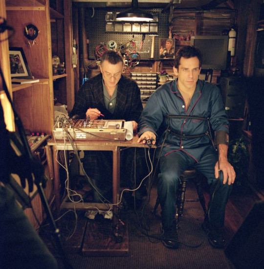 Der ehemalige CIA-Agent Jack Byrnes (Robert De Niro, l.) bleibt gegenüber seinem zukünftigen Schwiegersohn Greg Focker (Ben Stiller, r.) misstrauisch. Um sicherzugehen, beginnt er, Greg genau unter die Lupe zu nehmen - und setzt dabei ungewöhnliche Methoden ein.