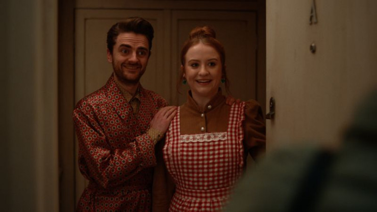 Jen (Máiréad Tyers) und Jizz (Luke Rollason) als braves Ehepaar. Jen hat George, ihrem Psychologen, von einer heilen Familienwelt erzählt. Als brave Hausfrau, die ihrer Mutter etwas kocht und Jizz als treuen Menschen vorstellt.