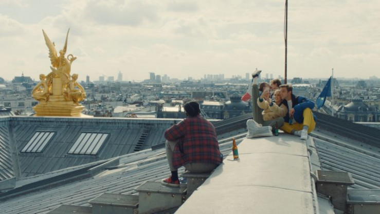Flora (Suzy Bemba, l.) hat während der Proben neue Freunde kennengelernt. Valentin (Adrien Dewitte, r.) und Aurore (Hortense De Gromard, M.) nehmen Flora mit, um den besten Ausblick in Paris zu genießen.