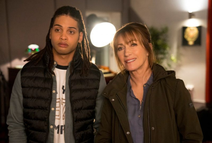 Robbie Cullen (Shane O'Regan, l.) stellt sich am Tatort den Fragen von Fergus (Rohan Nedd, r.) und Harry (Jane Seymour, M.). Fest steht: Als Jamie starb, war dieser allein auf dem Dach.