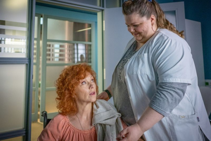 Adinda (Heike Trinker, l.) "behandelt" spontan auch ihre Zimmernachbarin Kerstin (Michèle Fichtner, r.).