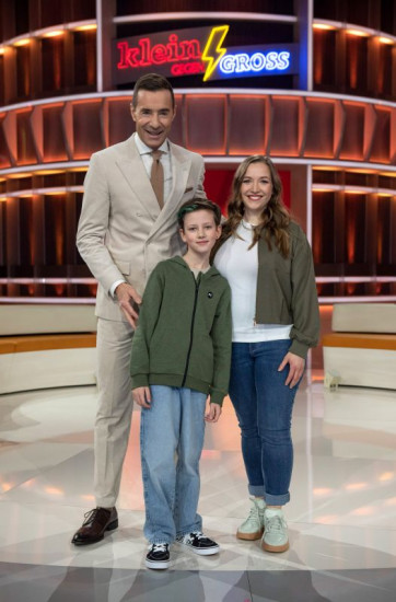 Moderator Kai Pflaume mit Noah (10) und Marie-Louise Finck