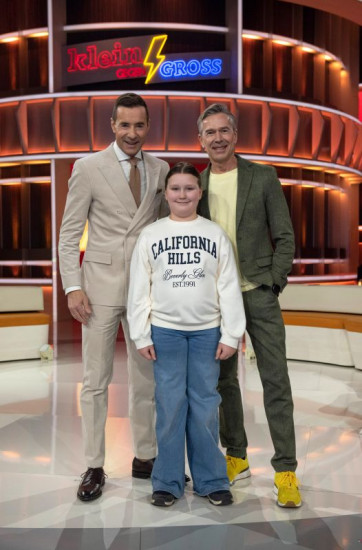 Moderator Kai Pflaume mit Ella (9) und Dirk Steffens