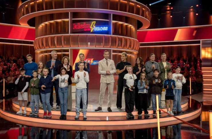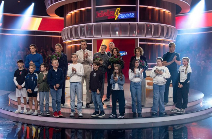 Moderator Kai Pflaume mit Chiara (11) und Adele Neuhauser