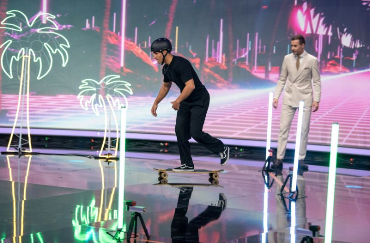 Wincent Weiss mit Kai Pflaume (r.) beim Longboard-Duell
