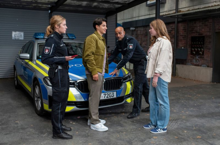 Das Team vom Großstadtrevier: (v.l.n.r.): 1. Reihe sitzend: Piet Wellbrook (Peter Fieseler), Harry Möller (Maria Ketikidou), Lukas Petersen (Patrick Abozen), Daniel Schirmer (Sven Fricke). 2. Reihe stehend: Nina Sieveking (Wanda Perdelwitz), Frau Küppers (Saskia Fischer), Hannes Krabbe (Marc Zwinz).