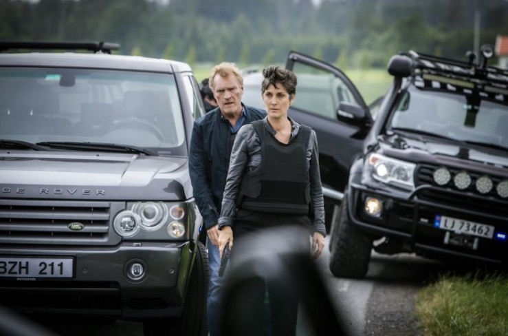 Kommissar Wisting (Sven Nordin) unterschätzt die Zielstrebigkeit seiner Kollegin Maggie (Carrie-Anne Moss) vom FBI.