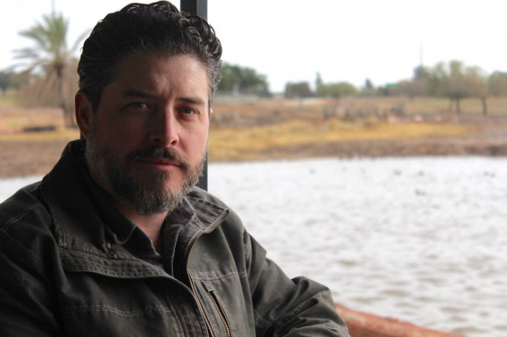 Der US-amerikanische Archäologe Matthew J. Adams bei einer Fahrt auf dem Nil.
