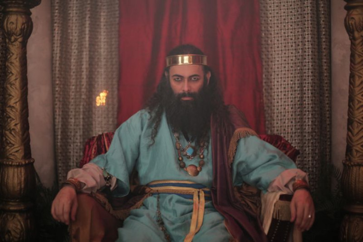 König Salomo auf seinem Thron (Reenactment).