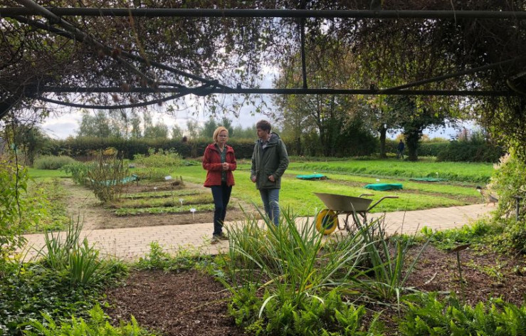 Frank Seibert (rechts) und Astrid Sprenger (links), Leiterin des Heilpflanzengartens von Weleda bei Schwäbisch-Gmünd.