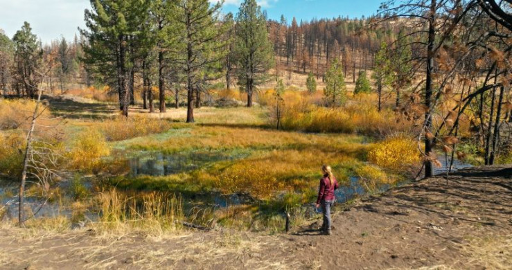 Emily Fairfax in einem sumpfigen Waldgebiet.