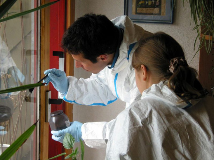 Willi und Saskia sichern Fingerabdrücke nach einem Einbruch in einem Reihenhaus.