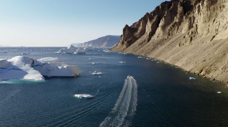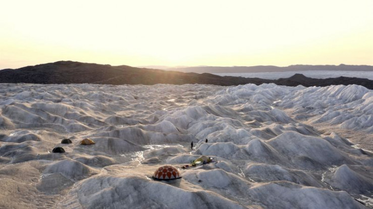 Auf dem Inlandeis erkundet Reiseführerin Kimmernaq mit einer Gruppe Franzosen die lebensgefährlichen Gletschermühlen. Es sind Löcher im Eis, die durch das Abschmelzen der Eisschicht entstehen und den Eispanzer von innen aushöhlen.