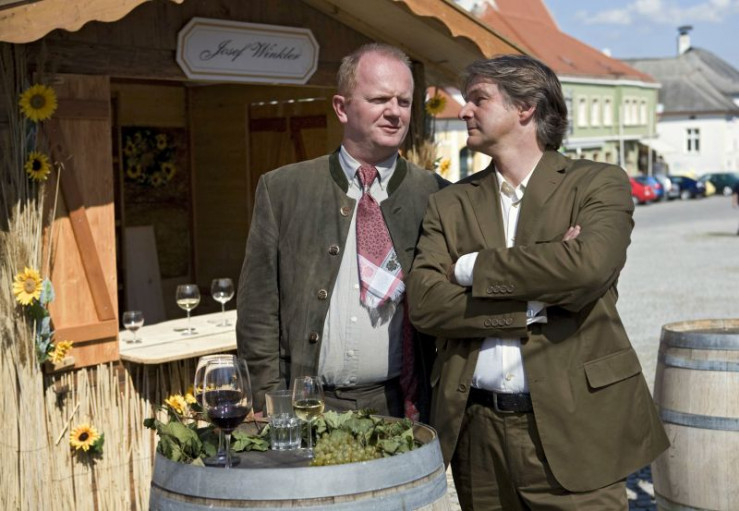 Thomas Stickler (Harald Krassnitzer, links) wird von Clemes Hoflehner (Jürgen Maurer) für eine Weinzeitschrift interviewt.
