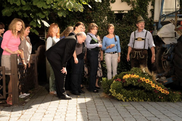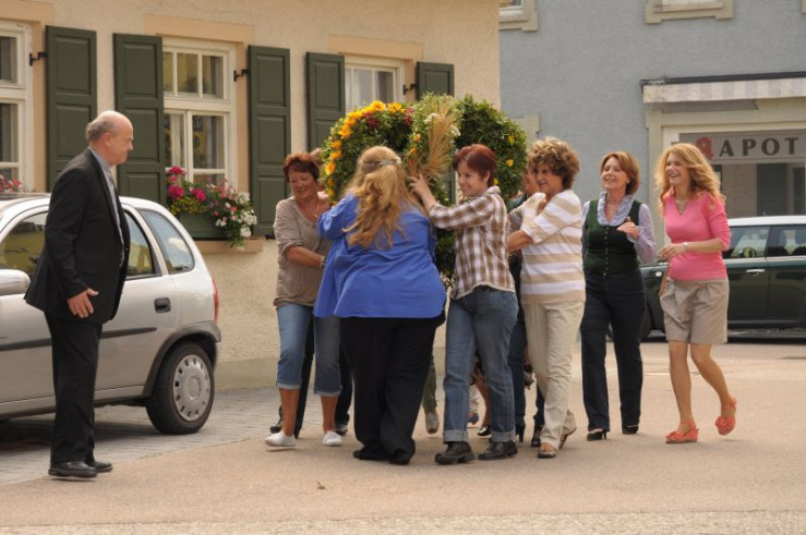 Annalena belohnt die fleißigen Landfrauen mit einer deftigen Brotzeit. Von links: Pfarrer Kurz (Hans Stadlbauer), Trixi Preissinger (Doreen Dietel), Annalena Brunner (Heidrun Gärtner) und Uschi Guggenmoser (Silke Popp).