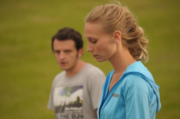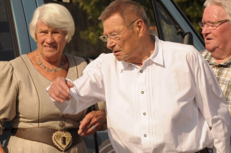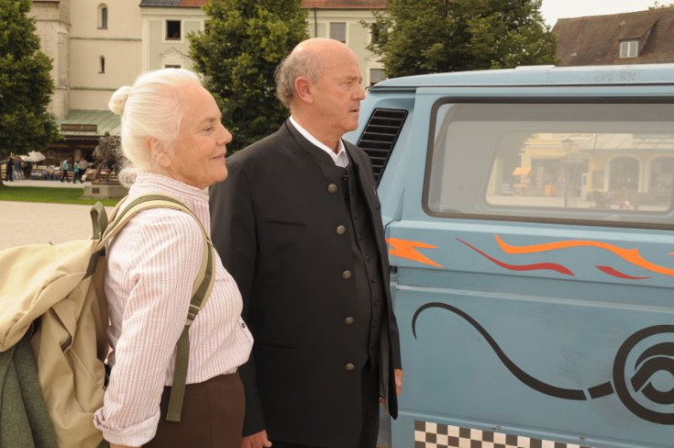 Theres bedankt sich bei ihrem Schutzengel. Von links: Theresa Brunner (Ursula Erber) und Harry (Andreas Schubert).