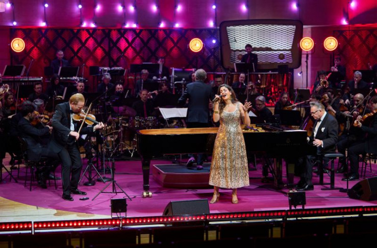 Mit den internationalen Stargästen Fatma Said und Alma Naidu feiern Daniel Hope und Götz Alsmann 10 Jahre "WDR3 persönlich" mit einem fulminanten Konzert aus der Philharmonie Essen. Unterstützt und begleitet werden sie vom WDR Funkhausorchester unter der Leitung von David Brophy. - v.l.n.r.: Daniel Hope (Violine und Moderation) Fatma Said (Gesang) Götz Alsmann (Gesang, Klavier und Moderation)