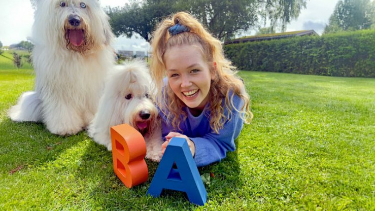 Nina und Old English Sheepdog Luna. Die Hunderasse ist besser bekannt unter dem Namen Bobtail.
