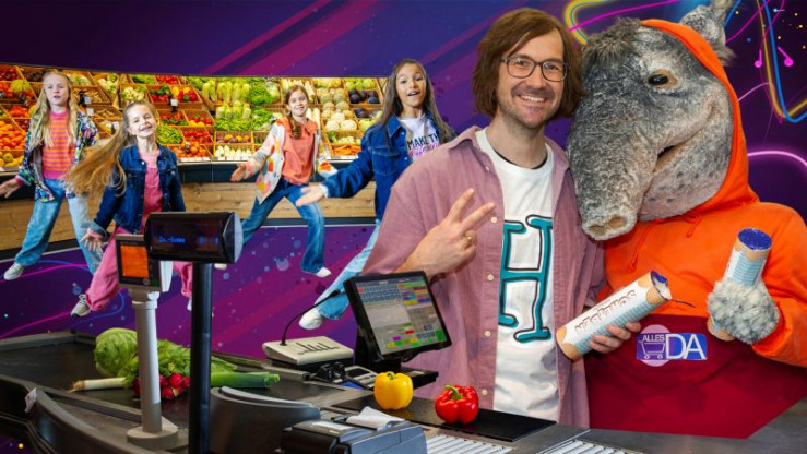 Was für ein aufregender Tag im Supermarkt mit HerrH, Volker Rosin, TanzTapir, Tom Lehel, Singa, den TanzAlarm-Kids und dem Supermarkt-Team.