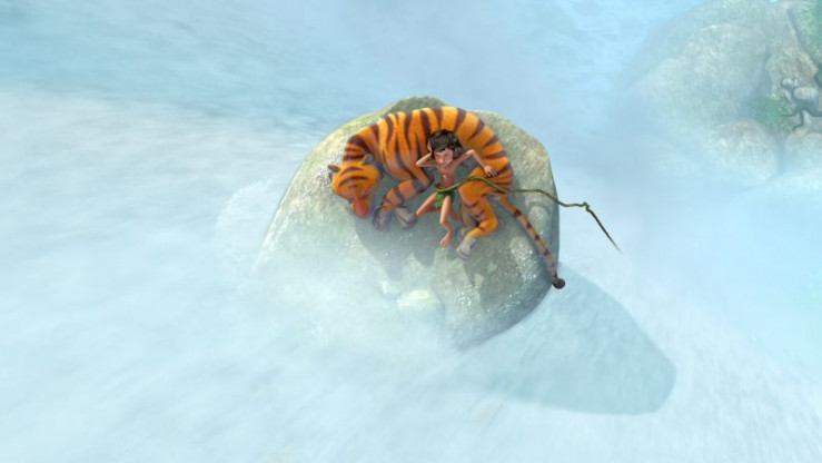 Auf der Flucht vor Shir Khan und Jakala retten sich Mogli und Phaona in einen hohlen Baumstamm, der auf dem Fluss entlang treibt. Auch Shir Khan landet im Wasser. Alle drei schwimmen auf den Wasserfall zu. Mogli und Phaona haben Glück, denn der Stamm bleibt an einem Felsen im Wasserfall hängen. Mogli hat alle Hände voll zu tun, um sich und Phaona ans Ufer zu retten. Dann entdeckt er auch noch Shir Khan, der völlig erschöpft auf einem Felsvorsprung unterhalb von ihnen im Wasserfall liegt. Wird er auch ihm helfen?