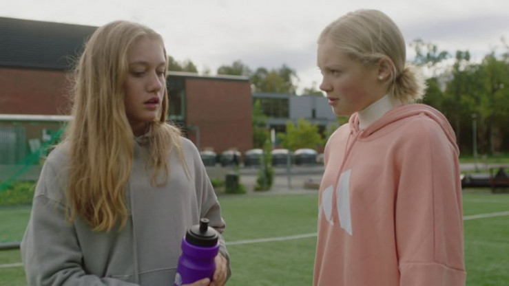 Im Sportunterricht drängt Mina (Ameli Olving Sælevik, rechts) Tara (Maya Ystenes, links), sie mit auf die Party der "Todestaucher" zu nehmen. Und Tara verstrickt sich immer weiter in Ausreden und Notlügen.