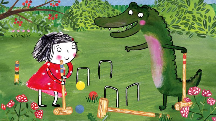 Rita weiß alles über Krocket, aber das Krokodil muss noch viel lernen.