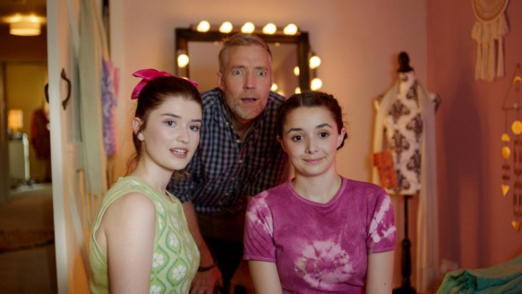 Audreys Vater (Geoffrey Newland) platzt in Ninas (Caitlin Hamilton, l.) Zimmer, als sie ein Makeover-Video mit ihrer Schwester Addie (Lola Blue, r.) für ihren Vlog aufnimmt.