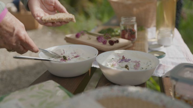 Zubereitung von Quark mit frischen Kräutern bei der Kräuterwanderung mit Angelika Spöri.