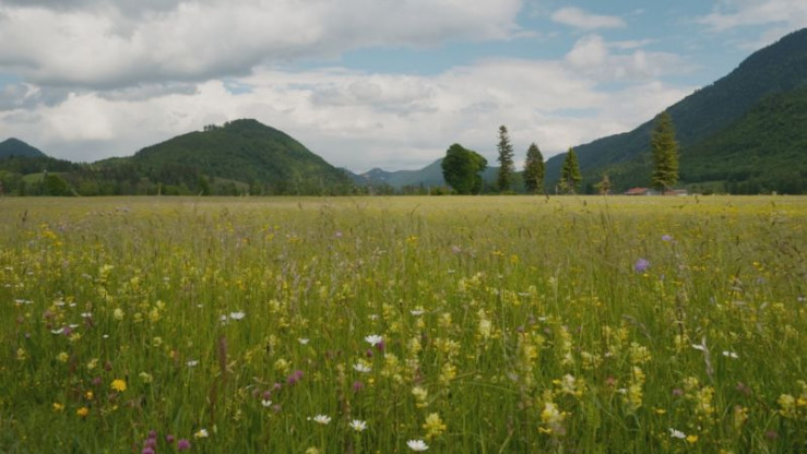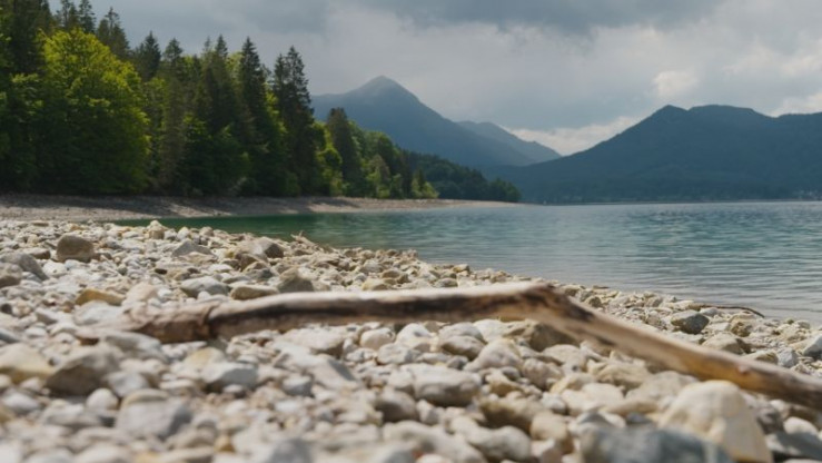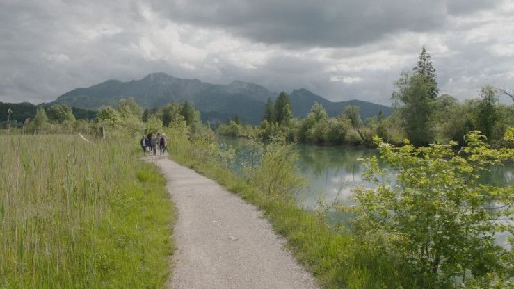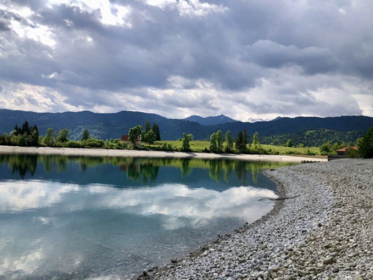 Vor der Kulisse von Heimgarten und Herzogstand fließt die Loisach durch den Kochelsee.