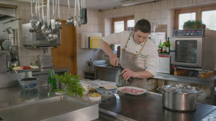 Die "Schweizer Wirtin" Barbara Hipp vom Gasthaus zur Schweiz in Schlegldorf bereitet den Rehrücken zu.