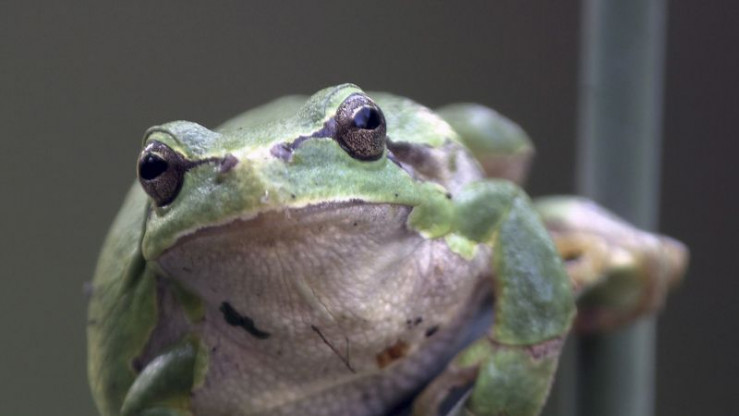 In der wärmenden Frühlingssonne beginnen am seichten Ufergewässer die Wasserfrösche mit ihrer Partnersuche.