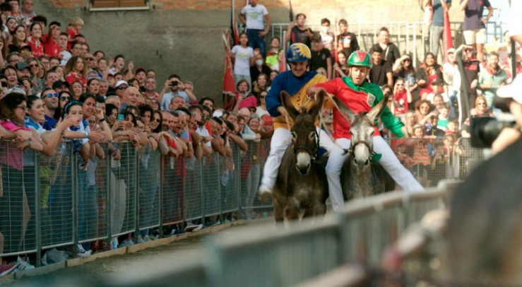Beim Palio in Torrita di Siena müssen die Reiter ohne Sattel klarkommen, die Esel dürfen nur mit der flachen Hand angetrieben werden.