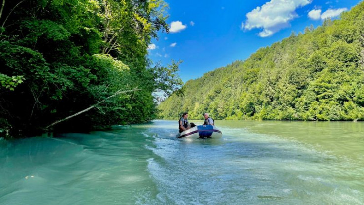 Tief eingeschnitten in die malerische Landschaft fließt die Drau zwischen Neuhaus und Lavamünd der Grenze nach Slowenien entgegen. Die Wälder reichen bis ans Ufer und verleihen der Drau ihre typische blaugrüne Färbung. Als "Drava" mündet sie nach weiteren 500 Kilometern in die Donau - und mit ihr irgendwann ins Schwarze Meer.