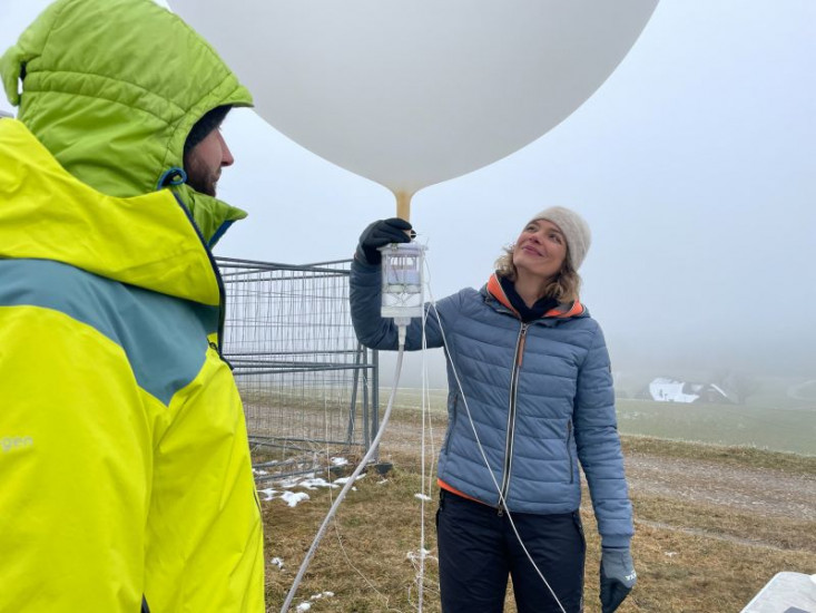 ARD-Journalistin Lena Ganschow trifft Sebastian Käser, Atmosphärenphysiker, ETH Zürich. Bei Eriswil, im Kanton Bern, werden auf einer Höhe von 900 Metern heliumgefüllte Wolken-Messballons gestartet.