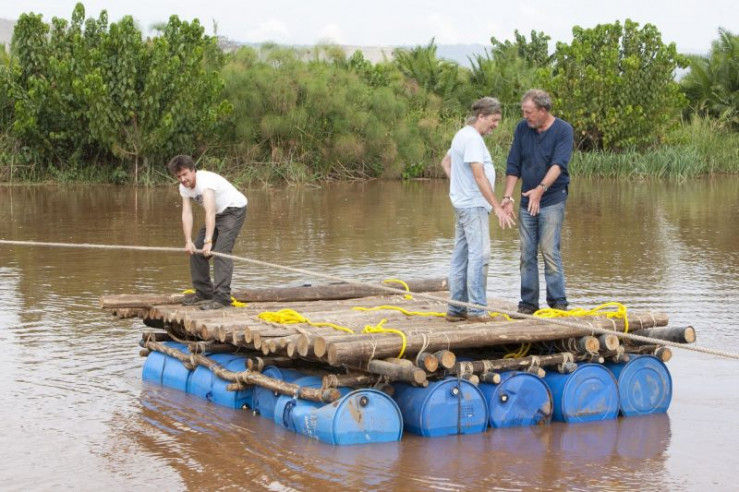 Richard Hammond (l.), James May (M.) und Jeremy Clarkson testen in Tansania ihr Autofloß.