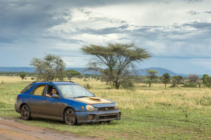 Richard Hammond in seinem Subaru Impreza WRX in der Serengeti.