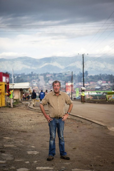 Die drei Top Gear Moderatoren (v.l.) Jeremy Clarkson, Richard Hammond und James May in der Serengeti.