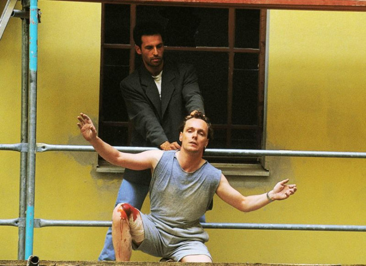 Kriminalkommissar Eschenbach (Matthias Bullach) stellt Westenhaus (Karl-Heinz von Liebezeit, vorne.), der wegen versuchten Mordes und Einbruch gesucht wird.