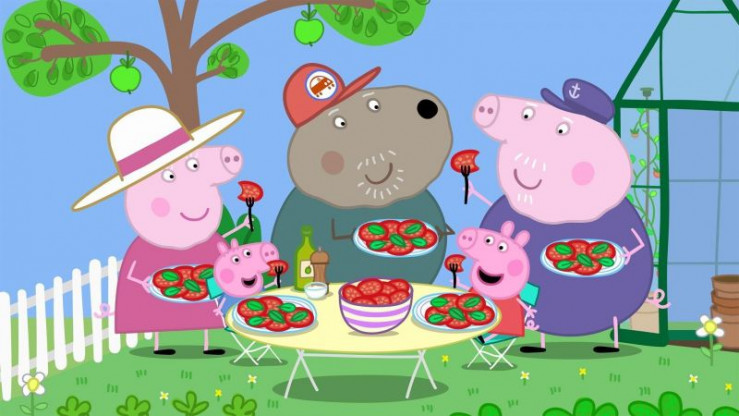 Peppa möchte einen Tomatensalat machen. Opa Wutz und Käpt'n Kläff haben beide ein Gewächshaus. Bei wem die Tomaten wohl am besten schmecken?