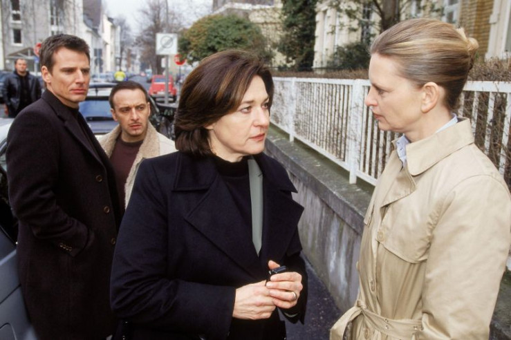 Anna Engelhardts (Charlotte Schwab, 2.v.re.) kleine Schwester gerät in Verdacht, Kokain geschmuggelt und einen Mann ermordet zu haben. Die Staatsanwältin Schrankmann (Kerstin Thielemann, re.) verdächtigt sie als Mitwisserin und warnt Tom (René Steinke, li.) und Semir (Erdogan Atalay) davor, ihrer Chefin zu helfen. +++ Die Verwendung des sendungsbezogenen Materials ist nur mit dem Hinweis und Verlinkung auf RTL+ gestattet. +++